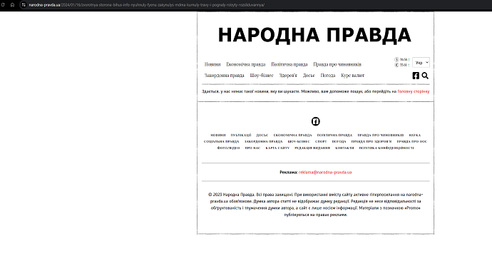 Details: The video has been removed from the Narodna Pravda YouTube channel and the channel has been closed. Bihus.Info said a news item containing the video has disappeared from the outlet's website.