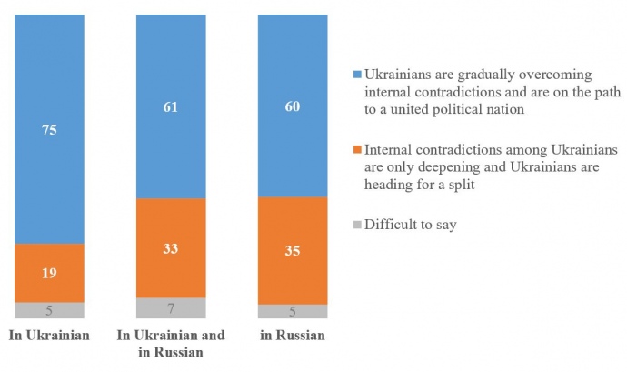 Regardless of the language spoken at home, most respondents believe that Ukrainians are still overcoming internal differences.