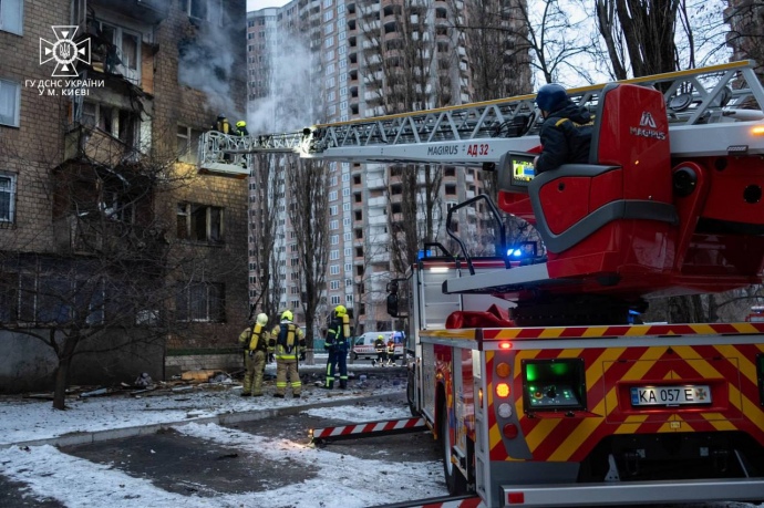 - As a result of a Russian attack on Kyiv on the morning of 23 January, residential buildings and a kindergarten were damaged in several districts of the city, and cars caught on fire in the Sviatoshynskyi district.