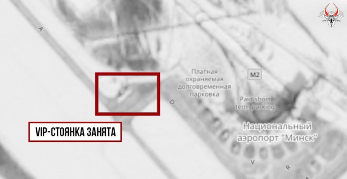 This spot is reserved for Belarusian government planes, including the Boeing VIP jets registered EW-001PA and EW-001PB, the self-proclaimed president Aleksandr Lukashenko's official aircraft.