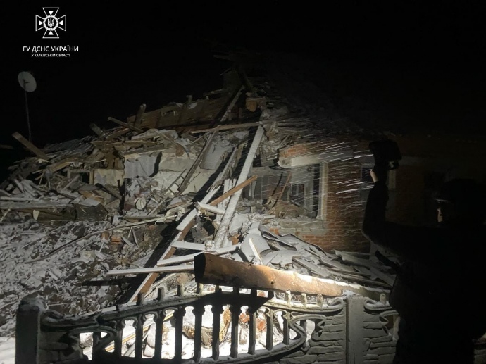 The aftermath of Russian attack on village of Vodiane in Kharkiv Oblast