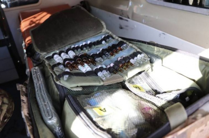 If the [wounded] person is inside the car, we have everything we need there: tourniquets, bandages, gloves, scissors to cut through their armoured vest, syringes, dressings, occlusive dressings and bandages. All of this is needed to get the person to a stabilisation point," Tsyba says.
