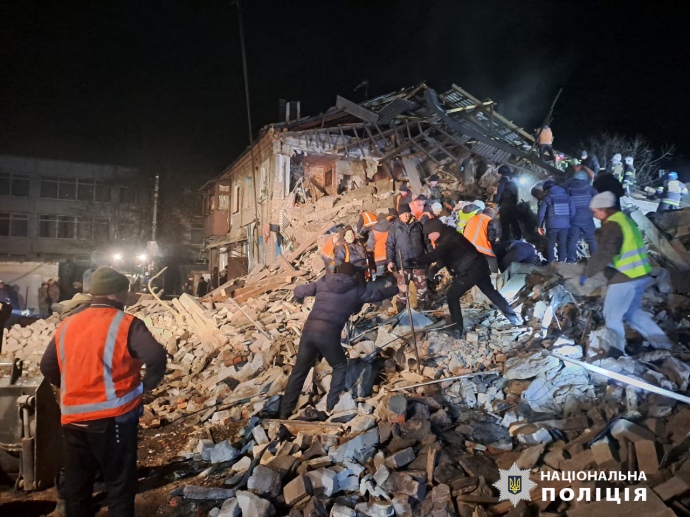 At 16:16, Russian troops struck an apartment building in the village of Velykyi Burluk in Kharkiv Oblast. Five people are known to be injured, two men have been killed, and four people have been rescued from under the rubble.