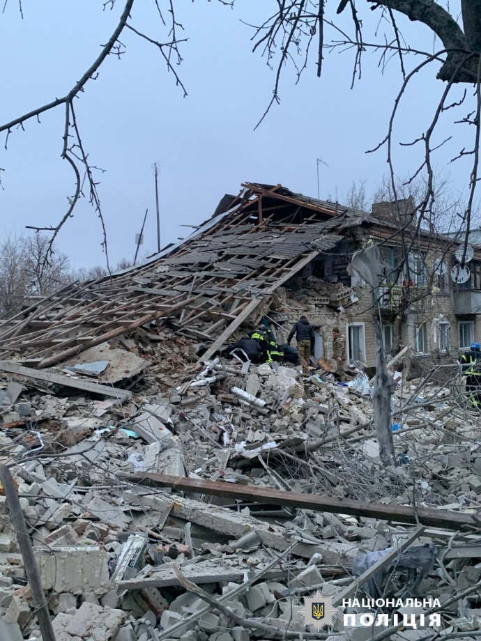 At 19:51 Syniehubov reported that two men who had been under the rubble were dead. The body of one of them has been retrieved.