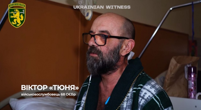 The same infantry team helped save Viktor, another wounded soldier, who could no longer move after lying in the cold for several days. Viktor's crew had been attacked during an evacuation. He was thrown by a blast wave. When he regained consciousness, he crawled over to the damaged, still-hot equipment, where he spent several days. Viktor managed to find a first aid kit, bandage himself, and leave a note indicating that he had been wounded.
