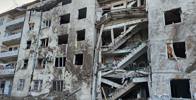 On 8 March, Russian troops dropped an air bomb on Kherson, severely damaging an apartment building and injuring a 7-year-old boy. The Kherson Oblast Military Administration published photos showing the consequences of the strike.