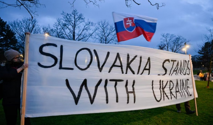 Up to 5,000 people in Bratislava, the Slovakian capital, have protested against the government's policies and in support of Ukraine.