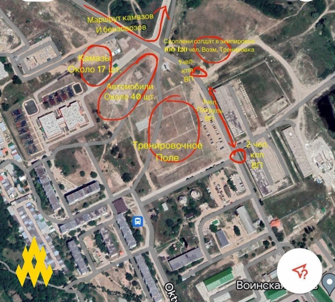 Quote: "There is a checkpoint on the side of the military camp, manned by a two-person shift and reinforced by a police unit. Fifteen KAMAZ lorries are parked near the main checkpoint.