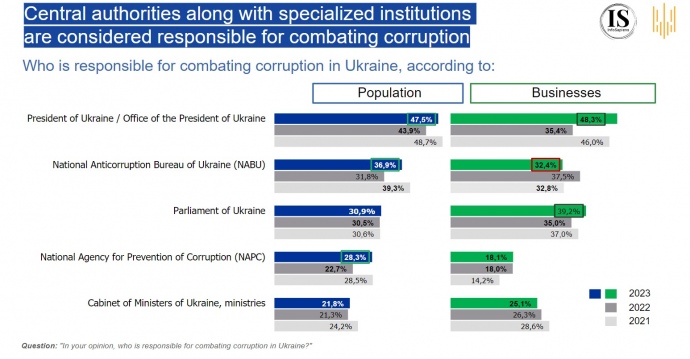 Most of the Ukrainian population and business consider President Zelenskyy and his office to be responsible for combating corruption.