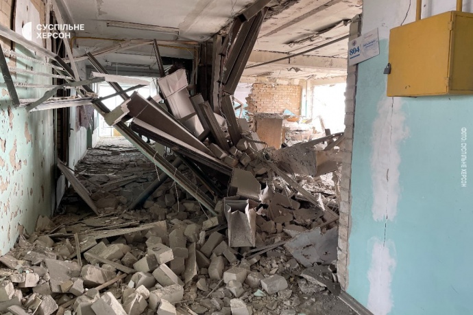 Quote: "There is a huge hole in the wall, damaged classrooms, and broken windows. This is how one of Kherson's higher education institutions looks today. Today, around 04:00 in the morning, the main building of the university was attacked by the Russian army."