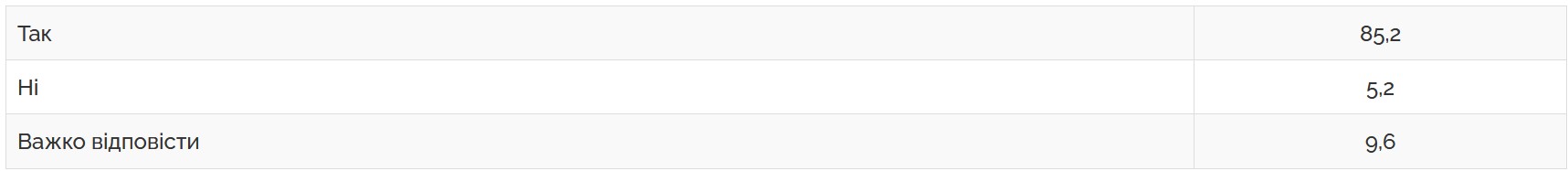 Broken down by region, this position is supported by 92% of people living in the west of Ukraine, 91% in the central regions, 72% in the south, and 71.5% in the east. The position is not supported by 1%, 3%, 7% and 15% of people respectively.