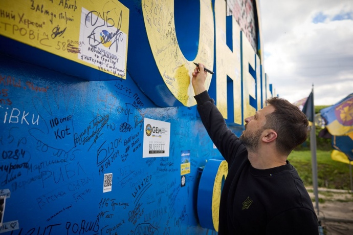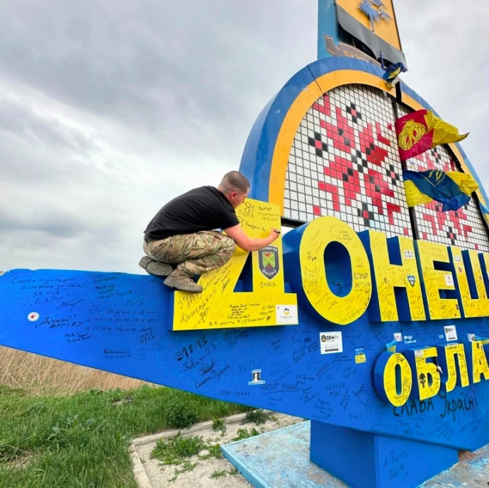 President Volodymyr Zelenskyy has visited Donetsk Oblast and signed a legendary sign marking the entrance to the region – known as a stele – which had been painted over by "activists" from Pokrovsk.