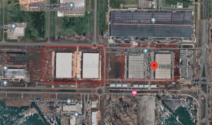 The layout of roads and buildings on the satellite image is very similar to the Alabuga Polytech site that was attacked by drones on 2 April.