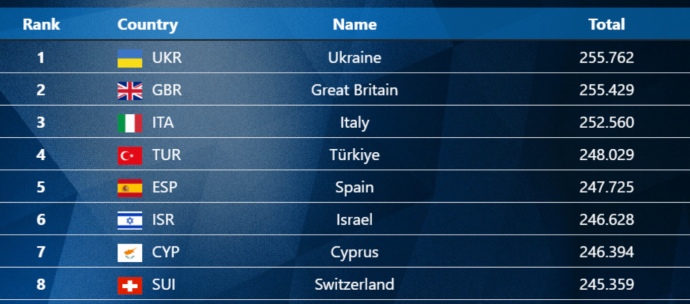 Details: The Ukrainian team scored a total of 255.762 points, 0.3 points more than the next-best team, the UK.