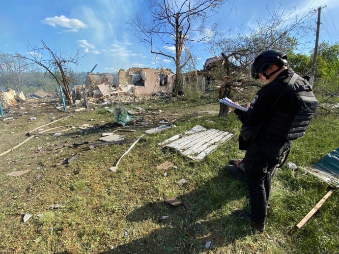 Quote: "Everything around shook as if an earthquake had begun. With one strike, an entire street was destroyed. Residents of the village of Monachynivka had to feel and see such devastation. The enemy unleashed a tremendously powerful weapon – a high-explosive bomb weighing one and a half tonnes.