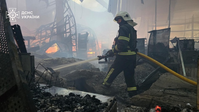 Details: State Emergency Service of Ukraine reports that the fire at the home improvement hypermarket was contained at 17:45.