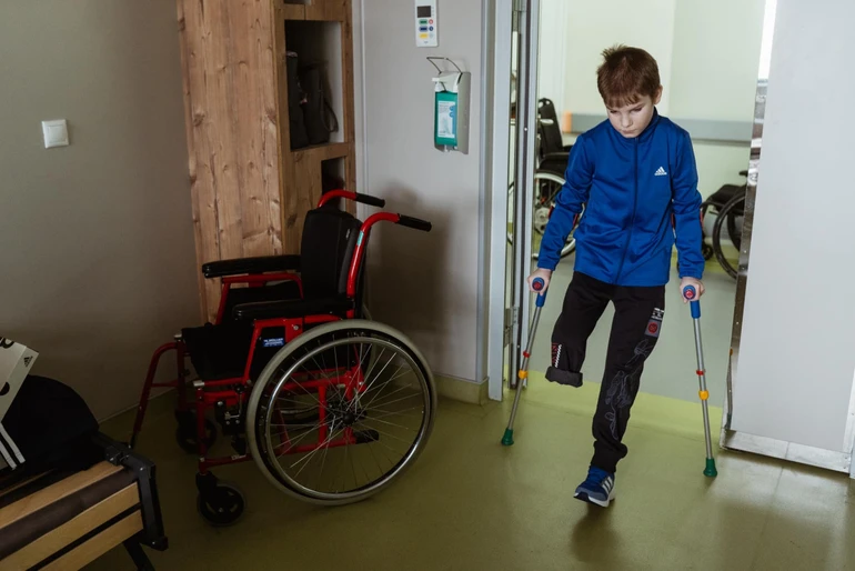 Sashko underwent many operations in Kharkiv before being transferred to Okhmatdyt in Kyiv, where he was treated in the orthopaedics and traumatology department. Here, Sashko underwent surgical interventions and rehabilitation as well as attending sessions with a physiotherapist and psychologist.