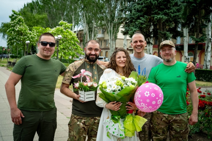 The soldier said the wedding ceremony was held near the front lines because it was not possible to leave the positions for an extended period of time. However, several of the defender's brothers-in-arms, including Senior Sergeant Oleksandr, were able to attend the celebration.