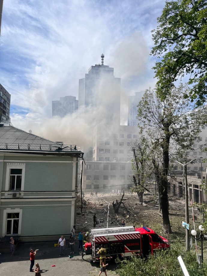 The Center for Pediatric Cardiology and Cardiac Surgery of Ukraine's Health Ministry has been damaged in the Russian attack on Kyiv on 8 July. It is next to the Okhmatdyt Children's Hospital, which suffered extensive damage during the Russian strike.