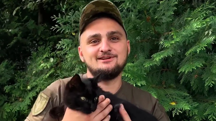 "Mavik, the black cat, came to Lviv Oblast from Kharkiv Oblast. In 2023, border guards found this frightened little kitten, nursed him back to health, and took him with them," the border guards say.