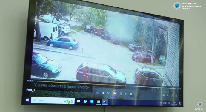 Klymenko said a photo taken by a bystander had helped in the search. A woman had taken a photo of the suspect, wearing glasses, near entrance No. 6 of the apartment building where Iryna Farion lived.