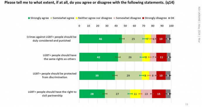 The vast majority of Ukrainians (71%) acknowledged that crimes against members of the LGBT+ community should be properly investigated and that perpetrators should be punished.