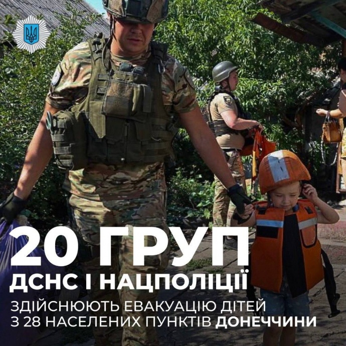 Evacuation of children from 28 settlements in Donetsk Oblast continues; 372 families with 481 children left over the past day.