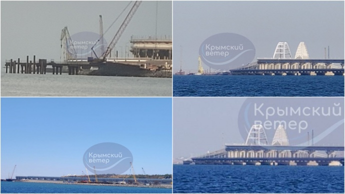 In May the Russians added fortifications around the Kerch Bridge for protection from Ukrainian naval drones. Fencing sections of barges were established for protection. The occupiers likely think that this can protect the construction from Ukrainian naval drones which have a powerful attack part for blowing such constructions up.