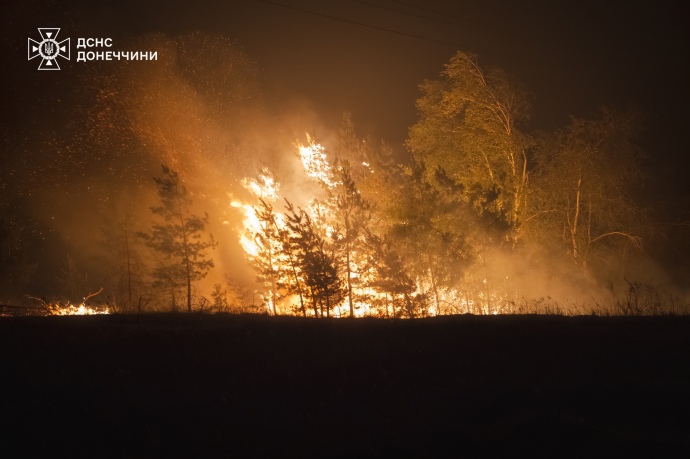 A large-scale fire, which has spread over 200 hectares, is being extinguished in the Lyman Forest in Donetsk Oblast.