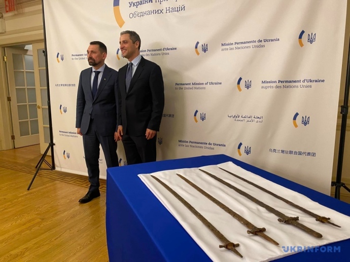 Details: Robert Silvers, US Under Secretary of Homeland Security for Strategy, Policy, and Plans, presented Tochyskyi with four mediaeval iron sabres dating from the 9 to 13th centuries, along with several unidentified items. These artefacts were likely taken by the Russians from temporarily occupied territories.