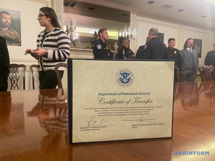 American diplomats handed over cultural and historical artefacts stolen by the Russians to Ukraine on 23 September. This transfer occurred during a visit by Mykola Tochyskyi, the new Minister of Culture and Strategic Communications, to the United States.