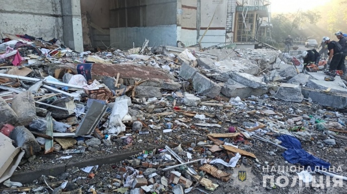Updated at 19:51: The Prosecutor General's Office reported that an aerial bomb struck a nine-storey residential building in the city's Kyivskyi district. One woman was killed and 20 people sustained injuries of varying degrees of severity. Law enforcement officers also found evidence of another hit on an area of open ground in the same district.