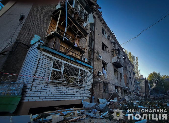 One of the strikes was on a high-rise residential building. As a result, the building was partially destroyed. A search and rescue operation is ongoing.