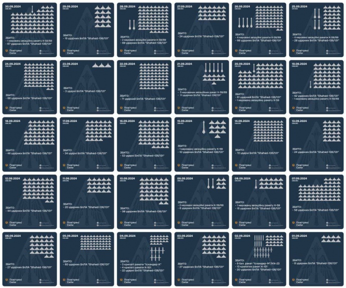 According to military journalists, September 2024 was the first month in which Ukraine suffered attacks by Russian kamikaze drones on a daily basis.