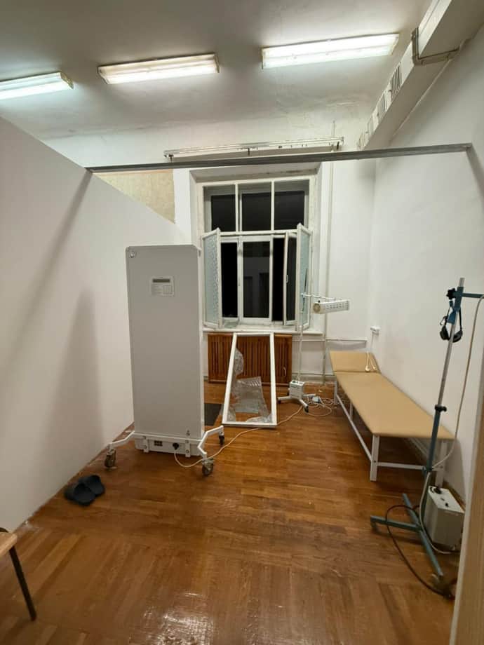 Updated at 22:36: Ukraine's Health Ministry has posted photos showing the damage to the medical facility in Kharkiv. Windows have been smashed in one of the departments of the regional hospital.
