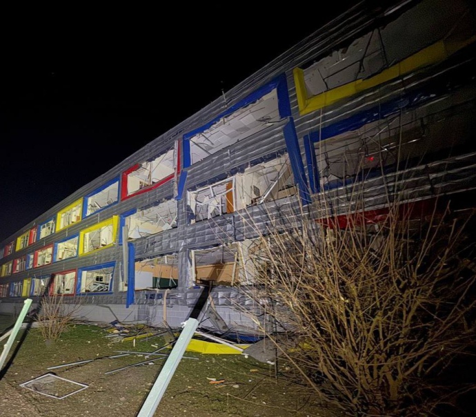 Windows were shattered and the facade damaged at an educational institution in Odesa.
