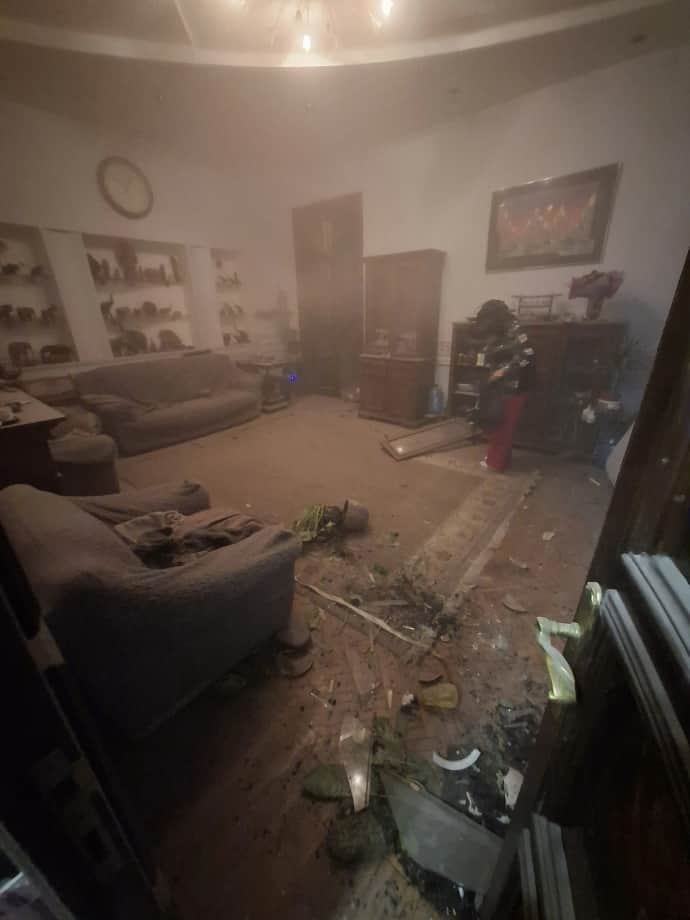 Residential buildings, a church, and cars were damaged, with fires breaking out at several locations.