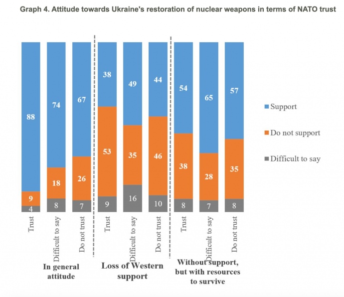 Quote from KIIS: "Moreover, those who trust NATO are the most supportive of restoring nuclear weapons."