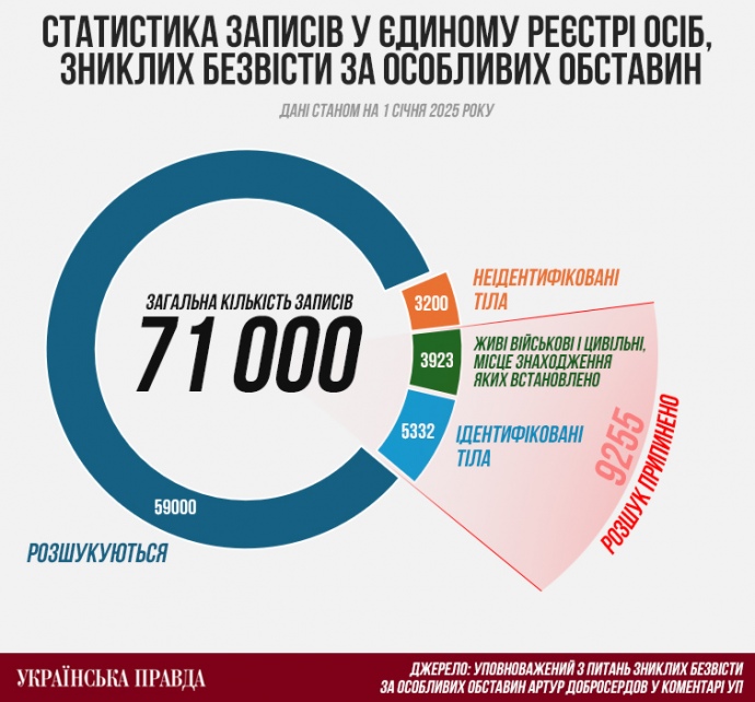 Source: Artur Dobroserdov, Commissioner for Persons Missing in Special Circumstances, in a comment for Ukrainska Pravda; Ukrainska Pravda article