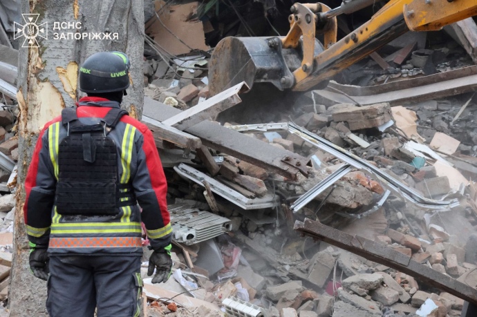 Quote: "Eleven injured and one dead – the number of victims of the Russian attack on Zaporizhzhia is increasing. Three people are currently in hospital – two women and one man. Rescue workers have pulled the body of a 63-year-old man out from under the rubble. A 27-year-old man is believed missing."