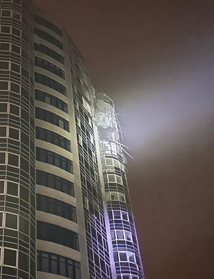 Quote from the mayor: "Early reports indicate that as a result of the drone attack, residential buildings were damaged and four cars caught fire."