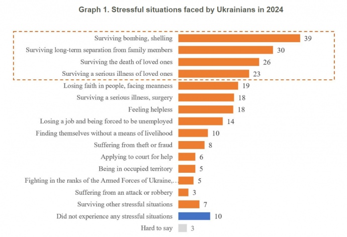 Poll shows that record 87% of Ukrainians experienced at least one stressful situation in 2024