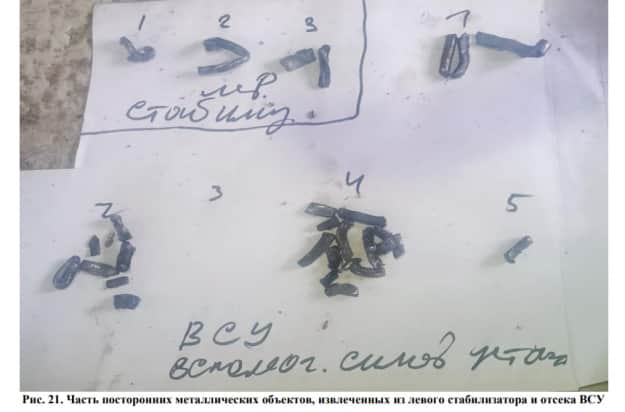 The report notes that some of the damages have a perfect rectangular shape. A considerable number of foreign objects recovered from the wreckage were sent for forensic study.