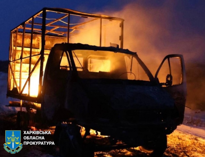 The lorry caught fire. Photo: Kharkiv Oblast Prosecutor's Office