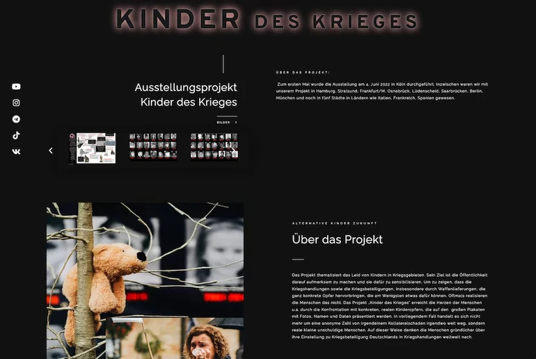 Since its launch in 2022, the exhibition has appeared in cities across Germany. The display, titled Alley of Angels, debuted in the city of Cologne on 4 June 2022 during a gathering of activists from Germany’s Russian-speaking community.