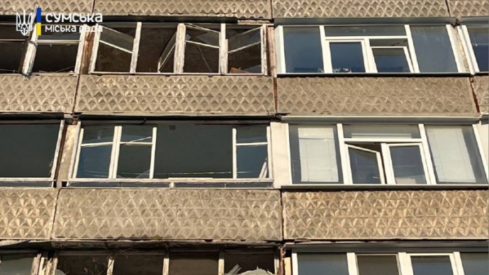 Russians attack Sumy with Shahed UAVs: multi-storey building damaged, two people injured – photo