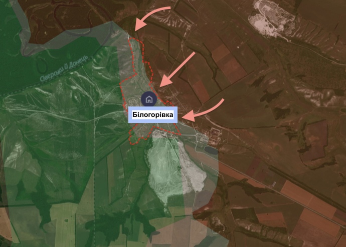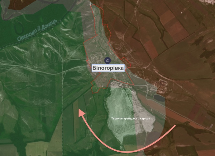 Details: Ukrainska Pravda has information that Russian forces initially broke through towards Bilohorivka from the south, coming from behind a chalk quarry spoil heap located outside the settlement. From there, they infiltrated the rear of Ukrainian defence forces’ units defending Bilohorivka.