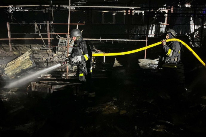 Fires have broken out in warehouses in the Fastiv and Boryspil districts in Kyiv Oblast as a result of a Russian drone attack.