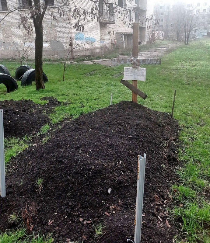 A grave in the courtyard. Photo: Denys Khrystov on Facebook