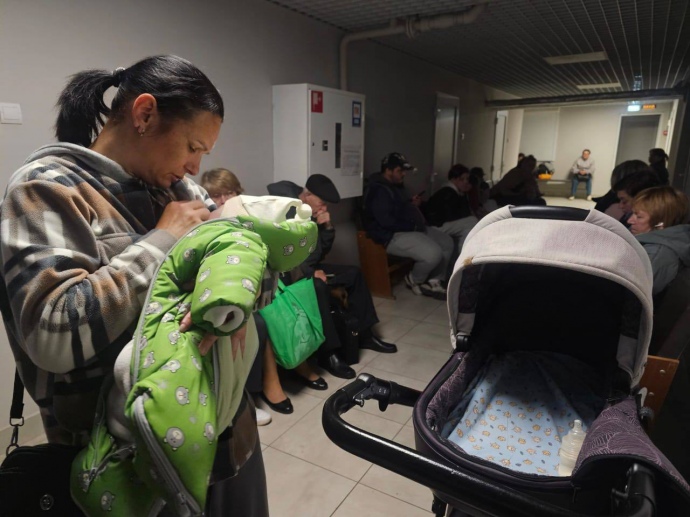 In the chaos and panic following the explosion, Iryna did not bring any food for the children. "It’s a blessing I can breastfeed Davyd here," says the 38-year-old woman.